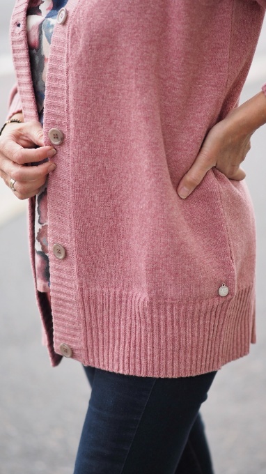 En myk og komfortabel strikkejakke laget i lun merino lammeull, med løs og ledig passform. Garnet er produsert i England og plagget er strikket i Litauen – Er dette din nye favoritt?