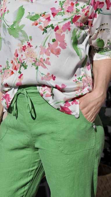 Hommelvik Green er en. bukse med løst og deilig snitt og lommer som er sydd utenpå. Buksen har ankel-lengde med en bred kant og splitter nederst. Laget i 100% lin med god slitestyrke. Er Hommelvik Greendin nye favoritt denne vår- og sommersesongen?
