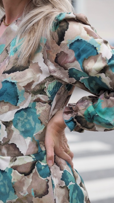 Stoffet til er laget av 100% viskose, OEKO-TEX sertifisert, noe som innebærer at stoffet testes for bruk av skadelige stoffer i fremstilling og produksjon. I valg av råvarer tilstreber vi valg av stoffer som er kortreist, dvs produsert i Europa.