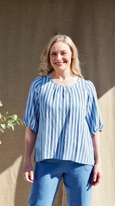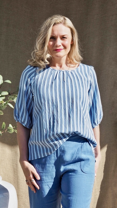 Svelvik Blue stripes i 90% viskose og 10% polyester. Herlig topp med god vidde som passer godt til både shorts, jeans og skjørt – Er Svelvik Blue stripes din nye favoritt denne vår- og sommersesongen?