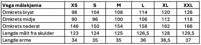 Vega har et elegant snitt og sitter like fint i str XS som str XXL. Lang elegant kjole med knepping i front, dekorative gullknapper, lommer og knyting i ryggen. Kjolen er laget i 90% viskose og 10% polyester med et fantastisk godt snitt.